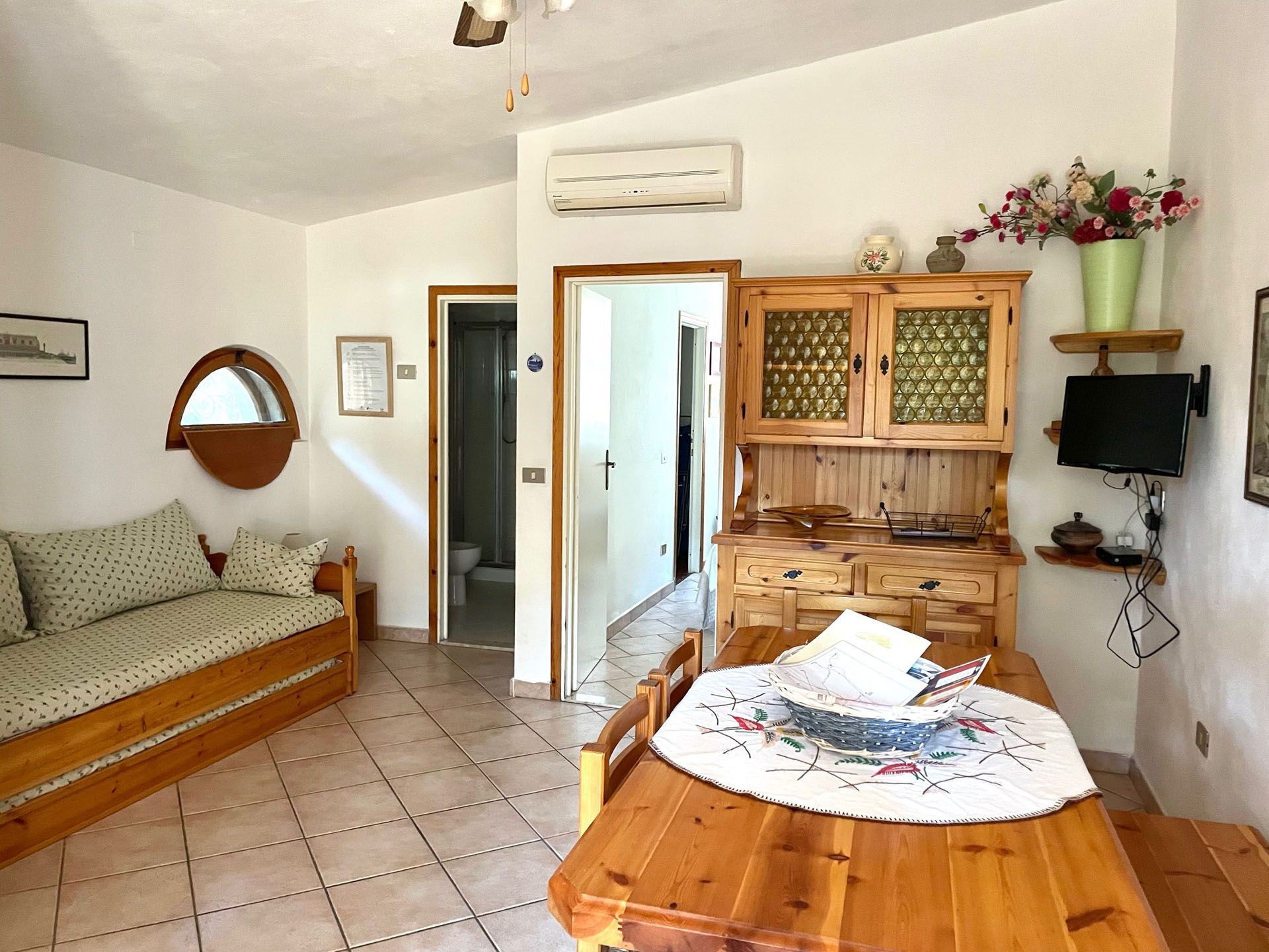 Appartamento con vista mare situato a piano terra con ingresso indipendente e spazi privati completamente recintati. All’esterno veranda con tavolo e sedie per mangiare fuori, lettini prendisole, barbeque. L’appartamento è composto da: Soggiorno pranzabile con divano letto matrimoniale Angolo cottura (piano cottura, forno, frigorifero con congelatore) Bagno con doccia box Camera matrimoniale Ripostiglio TV LCD HD WiFi Lavanderia Parcheggio privato coperto